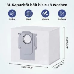 ăLarge CapacityăStaubbeutelgröĂe 16cm/6.3″Ă13cm/5.1″Ă15cm/5.9″, Der Einweg-Staubbeutel mit 3l, erfasst Staub, Schmutz und Tierhaare von bis zu 8 Wochen.
