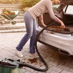 EasyVac 3 bietet eine mühelose Reinigung, einen leichten Transport und eine einfache Lagerung. Alle Kabel und Schlauchzubehöre werden für eine bequeme Aufbewahrung direkt am Sauger verstaut. Durch den praktischen Handgriff lässt sich der Sauger leicht transportieren und lagern. Er saugt trockenen Schmutz in schwer zugänglichen Bereichen, in der Werkstatt, im Haus oder im Auto. Dank des flexiblen Universaladapters und seiner konischen Form kann dieser Staubsauger für eine konstante Reinigung direkt an jedes Elektrowerkzeug aus dem aktuellen Bosch Home & Garden Sortiment und an viele Elektrowerkzeuge anderer Hersteller angeschlossen werden. Er wird automatisch synchron zum Werkzeug ein- und ausgeschaltet, was die Handhabung enorm erleichtert und die Reinigungszeit reduziert.