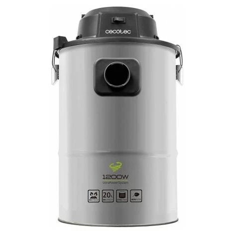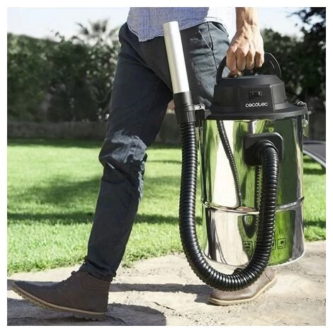 Cecotec Aspirador de cenizas Conga PowerAsh 1200 Steel. Gran potencia, ultrarresistente. Apto para cenizas, carbĂłn y serrĂn. 1200 W. DepĂłsito de acero inox. y 20 l. Boquilla y manguera metálicas.