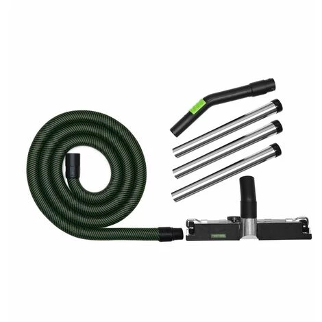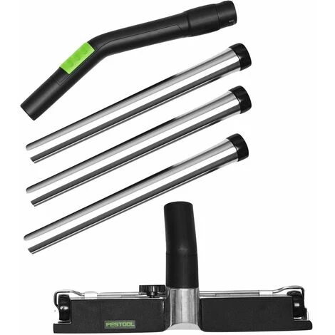 Der Saugschlauch D 36 x 3,5 m AS/CTR mit einer LĂ€nge von 3,5 Metern und einem Durchmesser von 36 Millimetern ist temperaturbestĂ€ndig, bis +70 °C temperaturbestĂ€ndig und besitzt einen Drehausgleich sowie eine Anschlussmuffe. Des weiteren ist der Schlauch mit einem RFID-Chip zur automatischen Saugschlaucherkennung und ist zudem Antistatisch. Das Handrohr D 36 HR-K AS mit einem Durchmesser von 36 Millimetern ist antistatisch mit Luftregulierungsschieber zur Saugkraftregulierung, Bajonettverschluss zur sicheren Verbindung mit den Absaugschlauch und ist gebogen. Die drei VerlĂ€ngerungsrohre D 36 VR-M 3x sind jeweils 950 mm lang. Die BodendĂŒse D 36 BD 370 besteht aus Aluminium mit 2 Laufrollen und 2 BĂŒrststreifeneinsĂ€tzen. Sie ist 370 mm breit und hat einen Durchmesser von 36 mm. Die FugendĂŒse D 36 FD-210 ist aus Kunststoff, 210 mm lang und 36 mm breit. Der Saugpinsel D 36 SP ist ebenfalls aus stabilem Kunststoff hergestellt und hat einen Durchmesser von 70 mm.