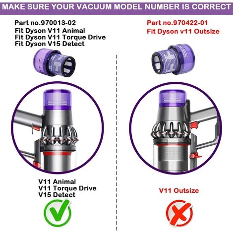 Nicht kompatibel â Diese Ersatzfilter sind nicht mit Dyson V11 Staubsaugern kompatibel. Bitte bestĂ€tigen Sie vor der Bestellung das Modell und die GröĂe Ihres Zubehörs. Weitere Informationen finden Sie unter; Produktbild.