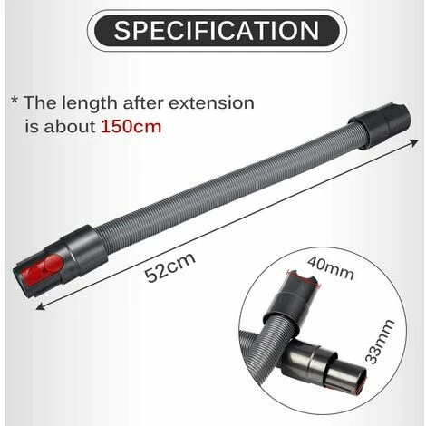 Verlängerungsschlauch für Dyson V8 V7 V10 Akku-Staubsauger.Hinweis: Kann nicht mit motorisierten Teilen gekoppelt werden.Aus hochfestem und umweltfreundlichem Material, Verschleißfestigkeit und Dichtheit des Schlauchs sind ausgezeichnet.Statische Länge: ca. 52 cm / 20 Zoll Zuglänge: ca. 150 cm / 59 Zoll Erreichen Sie schwer zugängliche Stellen im Auto und hinter Schränken.Hinweis: Da die Größe manuell gemessen wird, kann es aufgrund unterschiedlicher Monitore zu einem Messfehler von 1-3 cm kommen unterschiede zwischen dem tatsächlichen produkt und dem bild, bitte verstehenLieferumfang: 1PCS