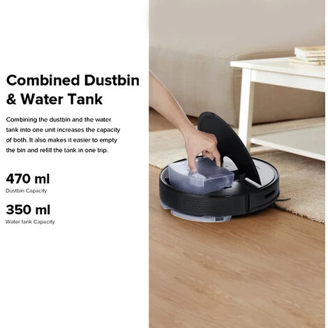 ● Kombinierter Mülleimer und Wassertank: Die Kombination von Mülleimer und Wassertank in einer Einheit erhöht die Kapazität von beiden. Es erleichtert auch das Entleeren und Nachfüllen des Behälters.