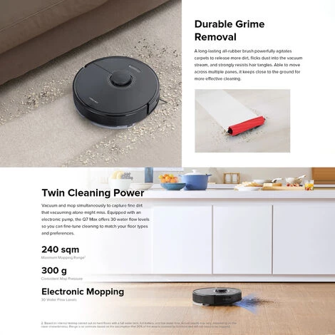 ● Doppelte Reinigungskraft: Gleichzeitig saugen und wischen, um feinen Schmutz aufzunehmen, der beim reinen Staubsaugen möglicherweise übersehen wird. Ausgestattet mit einer elektronischen Pumpe bietet der Q7 Max 30 Wasserdurchflussstufen, sodass Sie die Reinigung genau auf Ihre Bodentypen und Vorlieben abstimmen können.