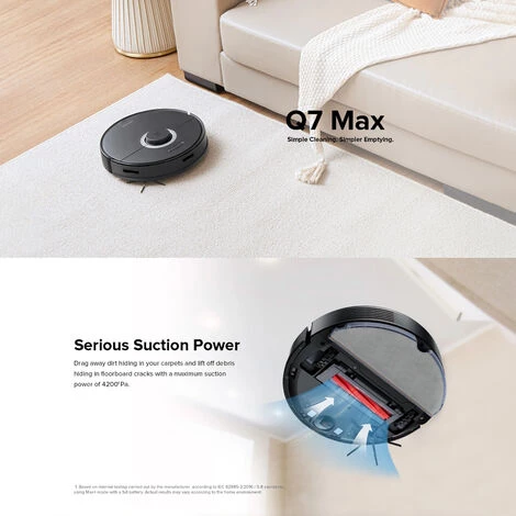 ● Sauber an und an: Angetrieben von einem großen 5200-mAh-Lithium-Ionen-Kraftpaket kann Q7 Max mit einer einzigen Ladung bis zu 3 Stunden3 ununterbrochen reinigen. Leicht genug Reichweite, um die meisten Häuser zu bewältigen.