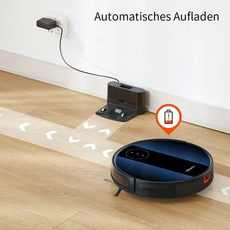 – Automatisches Aufladen : Wenn der Akku schwach ist, kehrt Ihr intelligenter Roboter automatisch zu seiner Ladestation zurück.