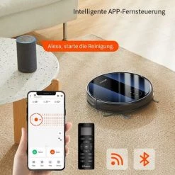 – Sprachsteuerung : Der Roboterstaubsauger ist mit Alexa und Google Home kompatibel. Sobald er angeschlossen ist, kann das Gerät jederzeit auf Ihren Sprachbefehl hin den Reinigungsvorgang starten oder stoppen. Sie müssen weder die APP öffnen noch die Fernbedienung finden, um einen Reinigungsvorgang starten oder stoppen zu lassen.