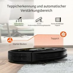 - 3 Stufen Einstellbare Saugleistung :D5s Pro Saugroboter verfügt über drei unterschiedliche Saugstärken, die Staub, Schmutz, Kaffeebohnen etc. weitestgehend aufnehmen können. Die maximale Saugleistung von 3000 Pa reicht aus, um fast die gängigsten Flecken zu entfernen.