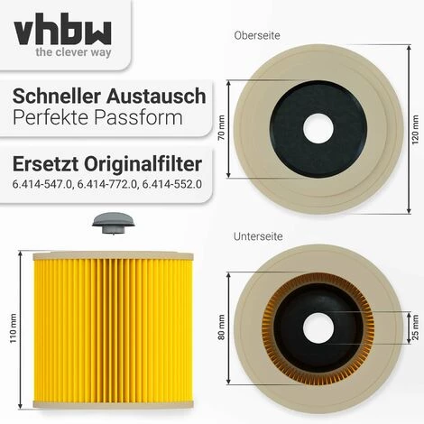 Kompatibler Patronen-Filter für Ihren Staubsauger von Kärcher.Der Filter ist waschbar und daher leicht zu Reinigen.