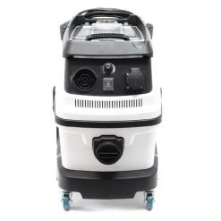Dank der Flüssigkeitsstandüberwachung in der zweiten Filterkammer behalten Sie immer den Überblick über die Wassermenge im Tank. Falls der Tank einmal zu voll sein sollte, verfügt der Sauger über eine Selbstabschaltung, die bei einem zu hohen Flüssigkeitsstand aktiv wird. Für einen problemlosen Transport sorgen die Vorder- und Hinterräder des Saugers sowie der klappbare Bügelgriff. Zusätzlich befindet sich eine integrierte 2000W Werkzeugsteckdose mit Anschaltautomatik am Sauger. Wird nun ein Elektrogerät an den Sauger angeschlossen und mit einem Saugschlauch verbunden, wird eine automatische Staubabsaugung erreicht.